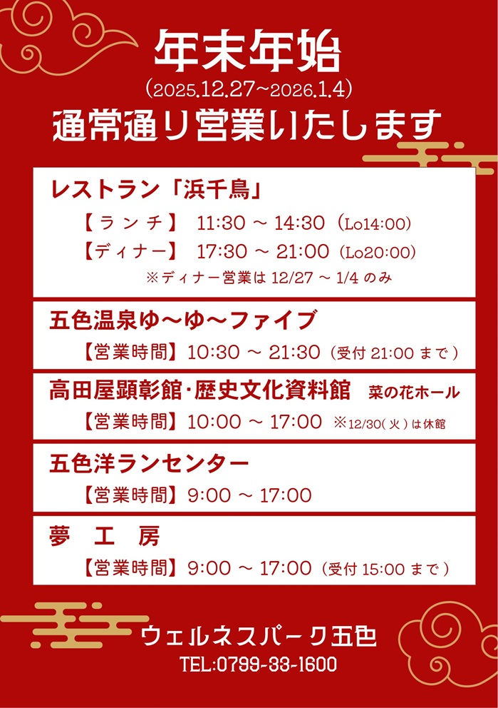 ゆ~ゆ~ファイブ 年末年始のご案内