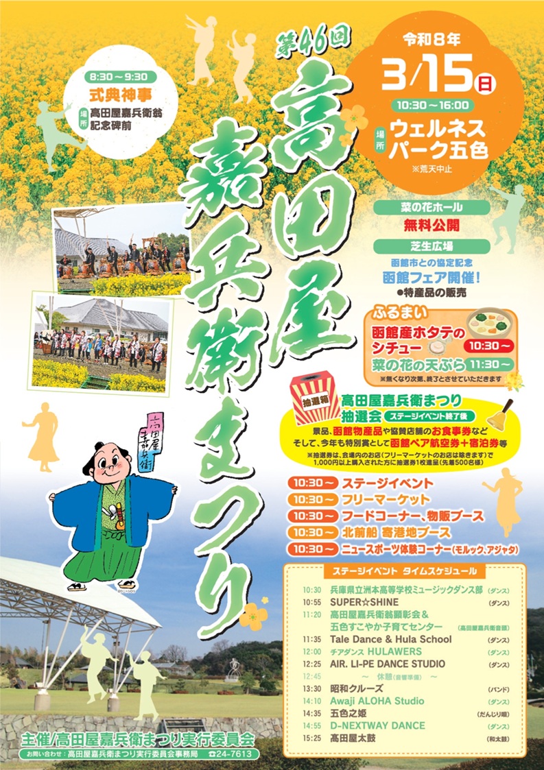 3/15(日)高田屋嘉兵衛まつり開催!2026.02.162026年3月15日(日)に『第46回高田屋嘉兵衛まつり』が -