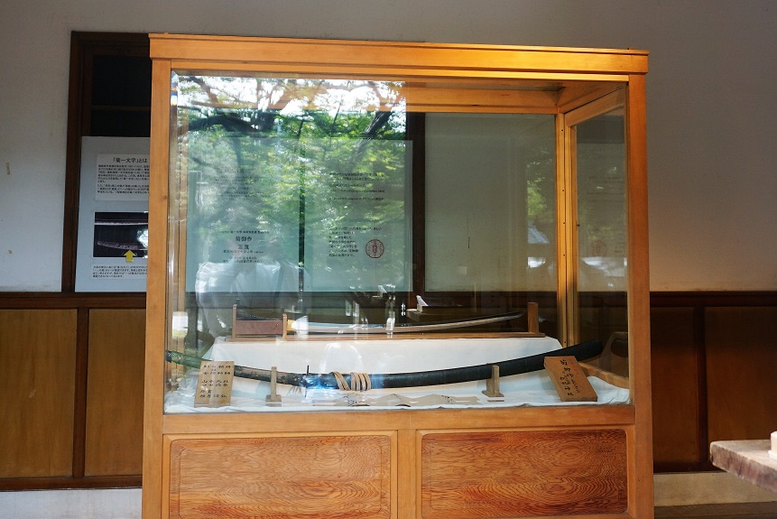 例大祭(秋祭り)の当日以外で名刀菊一文字の観覧はできません。代替として、社務所にて名刀菊一文字の関連資料を常設展示しております。