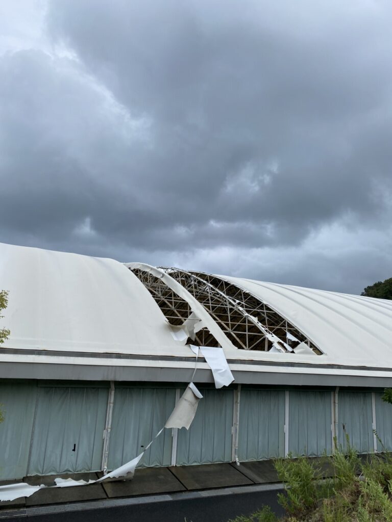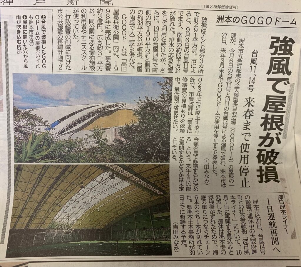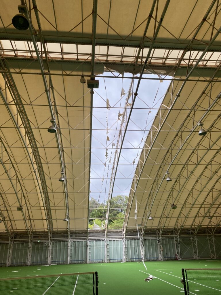 全天候型屋内施設「GOGOドーム」は、2022年9月に発生した台風14号により天井が損傷し、