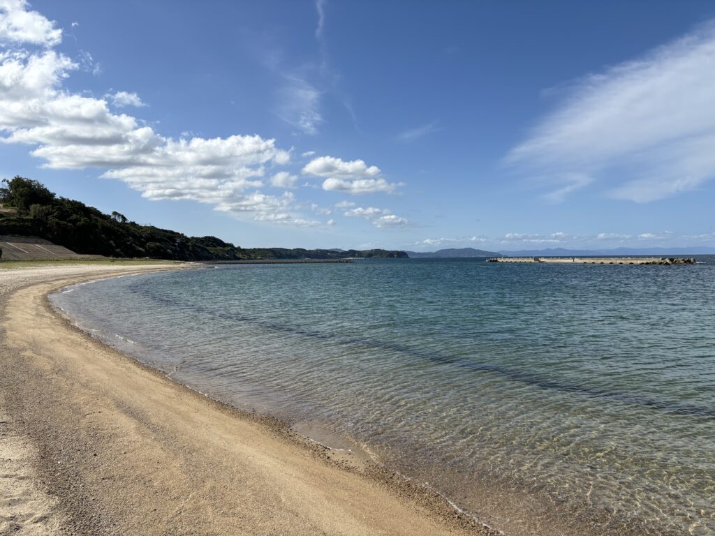 朝から散歩に行く気満々で、近くの海とウェルネスパーク五色の散歩が始まります。気持ちの良い青空の下、暑いのなんて、そんなの関係なし!