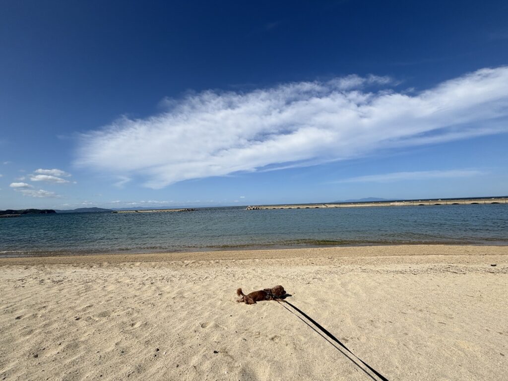 砂浜がとても気持ちが良かったのか、べったりお腹をすりつけて動きません😓なんともゆったりとした時間で、こっちまでリフレッシュになりました。