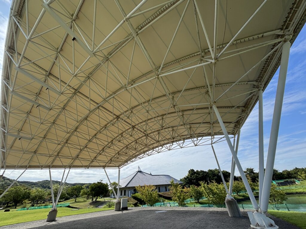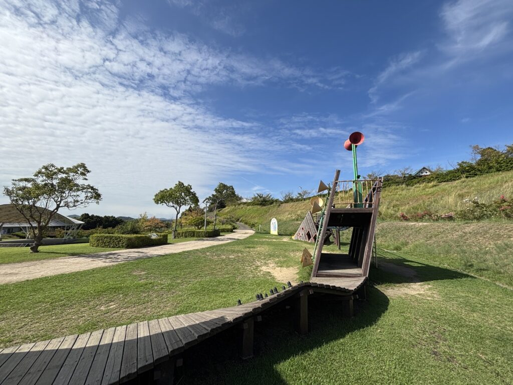 ウェルネスパーク五色に着いてからは、芝生広場、遊具まわり、大屋根のステージ(日陰で助かる~)をじっくり見て回ります。