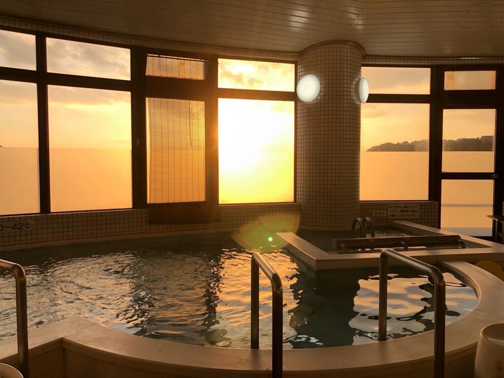 散策のあとは、天然温泉「ゆ〜ゆ〜ファイブ」でぽかぽかに温まるのもおすすめです。        露天風呂からは、秋空と山の景色を楽しめて、心も体も癒されます♨️