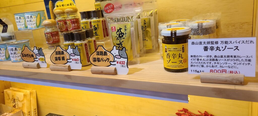 森山さんが自ら考案したカレースパイス「香辛丸」と、浜田屋本店の看板商品「淡路島ソース」の