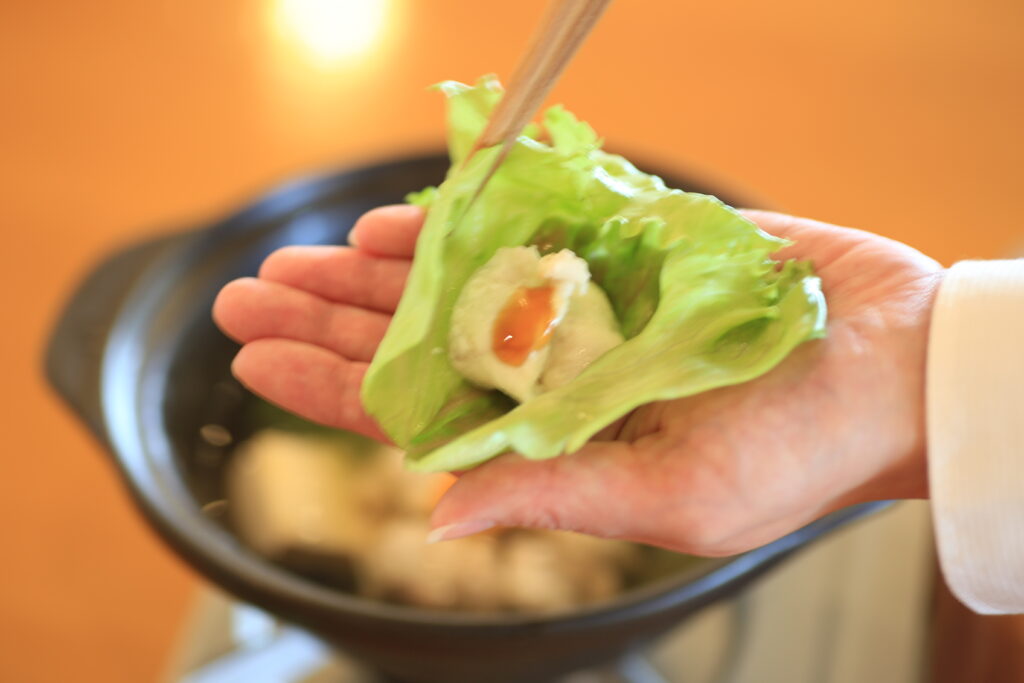 3.淡路島産レタスを使用。(レタスに包んでふぐを食べる)