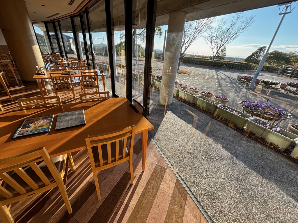 明るく開放的なレストランでは、お花や、景色を見ながらゆったりと