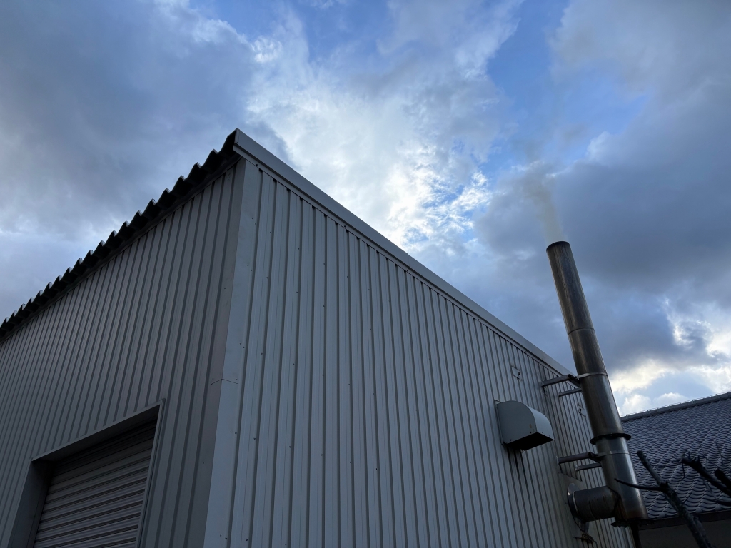 画像のバイオマスボイラ―を補助的に使ってお湯を沸かしています。