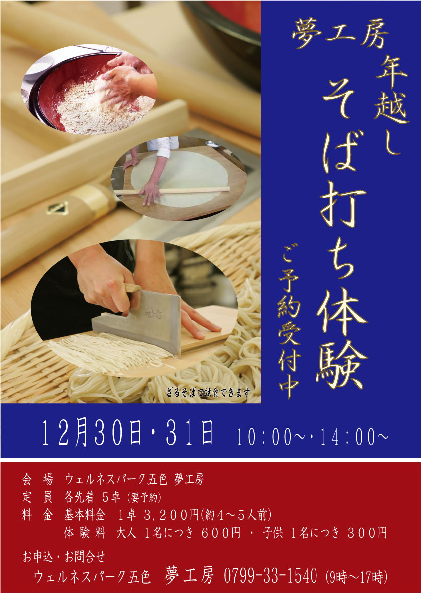 「年越しそば打ち体験」2025.11.23年末恒例の「年越しそば打ち体験」ご予約受 -