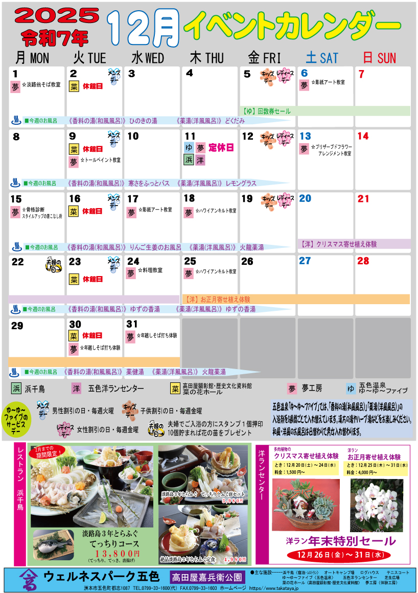 12月のイベントカレンダー2025.11.28いよいよ師走、今年もあと1か月となりまし -