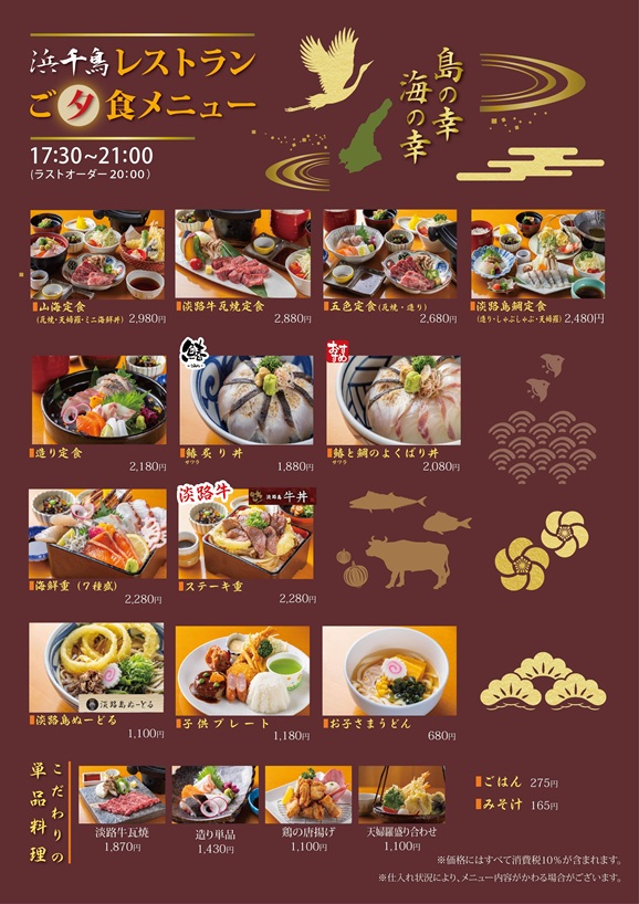 日頃より「レストラン浜千鳥」をご利用いただき、誠にありがとうございます。 誠に勝手ながら、**2025年12月27日(土)〜2026年1月4日(日)**の期間中は、より多くのお客様にスムーズにお食事をお楽しみいただくため、一部メニューを変更(限定メニュー)して営業させていただきます。 期間中は、この時期ならではの厳選したお料理をご用意しております。 何卒ご理解のほど、よろしくお願い申し上げます。